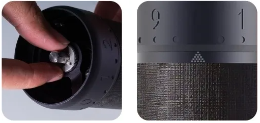 - Se referenstabellen för malningsinställning nedan och vrid justeringsringen medurs för att ställa in.