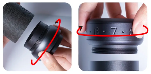 - Nollpunkten kan förskjutas med två eller fler klick på grund av den kraft som appliceras när justeringsringen dras åt.