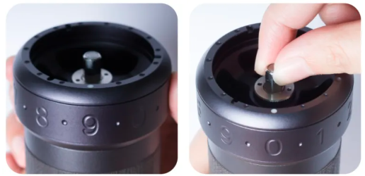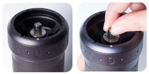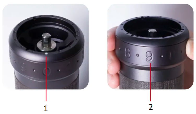 - Efter att du har monterat kvarnen igen, kalibrera justeringsringen enligt anvisningarna nedan.