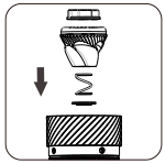 Sätt tillbaka komponenterna i rätt ordning: nedre lageröverfallet (den konvexa sidan som vetter mot lagret), fjäder, malm och justeringsratt. |