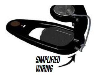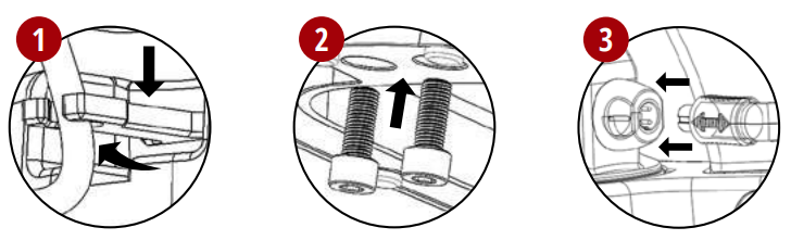 - Orientera spakaggregatets undersida över trådstyrningens ovansida och skruva ihop basen och spakaggregatet med två skruvar. Säkerställ att spaken är i linje och dra åt.