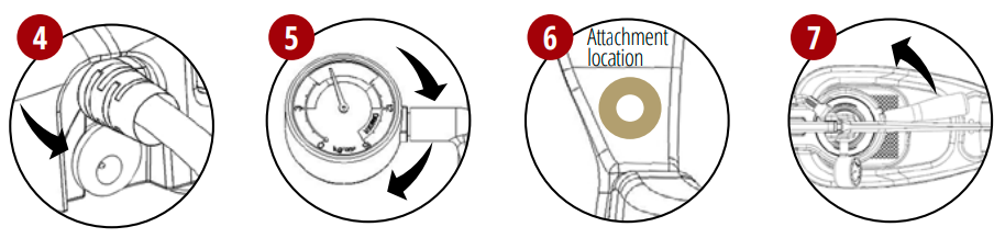 5. Fäst tryckmätaren på skaftet genom att skruva in den medurs. Skruva in den helt och rikta sedan mätarens framsida uppåt.