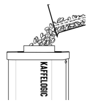 ![]() | Om du steker en större mängd, sätt i en BOOST-ring. Häll din kaffemängd i rostmaskinen. |