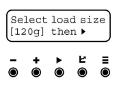 ![]() | Du kommer att bli ombedd att välja din laddningsstorleken med knapparna + och -. |