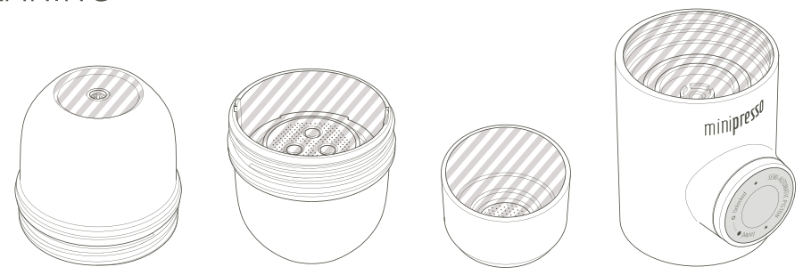 - Låt inte MiniPresso användas av barn utan instruktioner. Barn måste hållas under uppsikt för att förhindra att de leker med Minipresso.