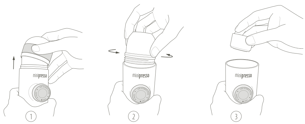 - Drick aldrig vätska direkt från MiniPresso eftersom innehållet kan vara varmt.