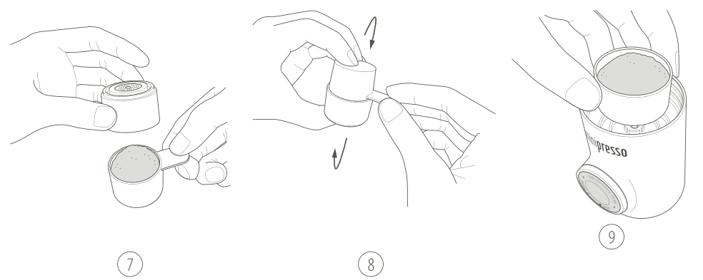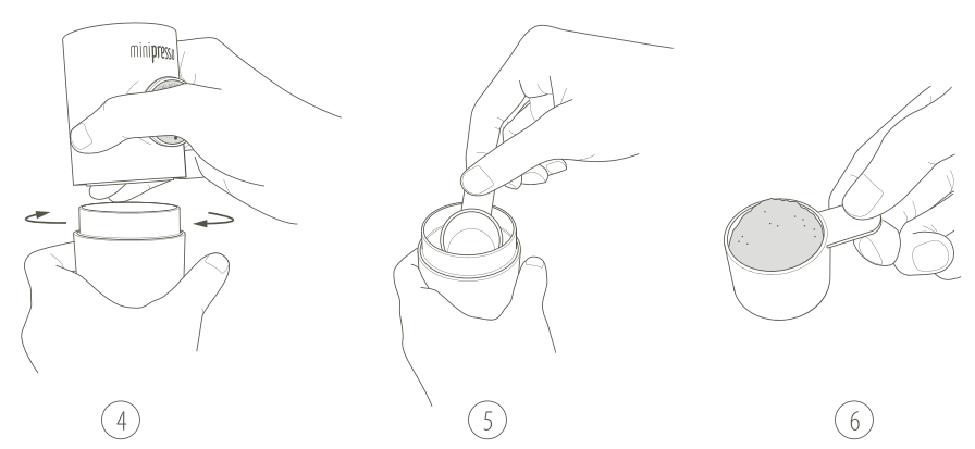 14. För MiniPresso ovanför koppen och börja pumpa. De första 6 dragen fyller filterkorgen med vatten. Fortsätt pumpa tills det inte kommer ut mer kaffe.