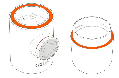 - Efter att du tagit bort förpackningen, se till att MiniPresso är intakt.