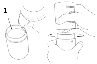 Skölj regelbundet alla delar av MiniPresso KIT under rinnande vatten efter varje användning. Låt de enskilda delarna torka separat.