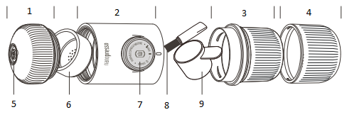 Det är viktigt att respektera din maskin och rengöra den regelbundet. Ett gott underhåll gör att du kan använda din NanoPresso i många år. Rengör de skuggade områdena under rinnande vatten efter varje användning. Låt delarna torka separat.