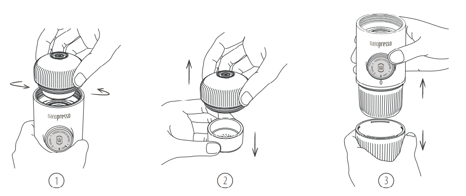 - Förvärm alla NanoPresso delar samt din kopp genom att köra ett program med endast varmt vatten.
