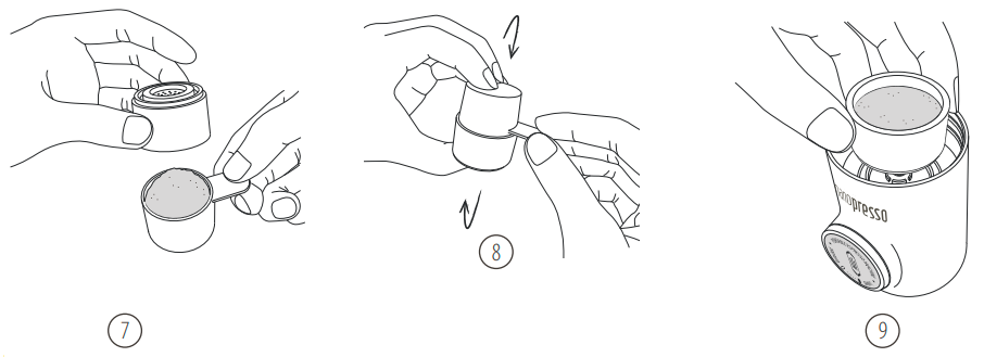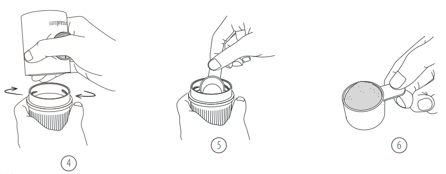 6. Fyll skopan med finmalet kaffe (8 gr).