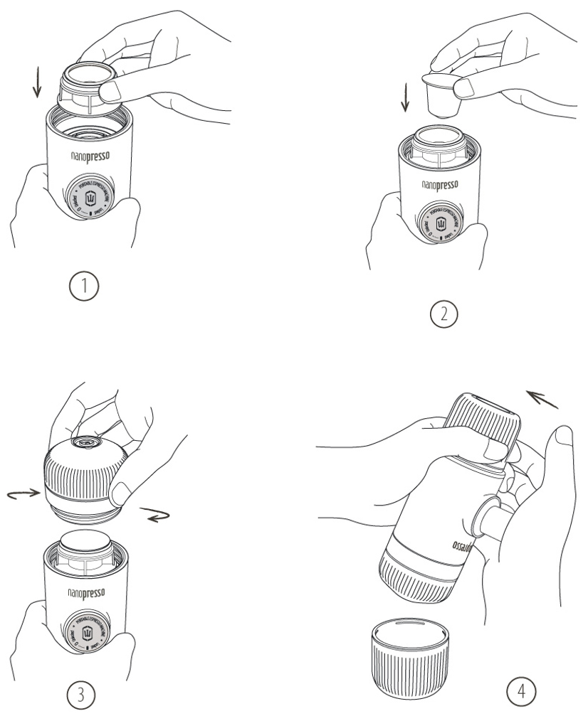 - Placera kapselhållaren i Nanopresson.