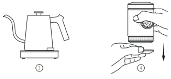 - Värm aldrig vatten direkt i vattentanken PicoPresso. Vatten måste kokas med hjälp av en extern apparat, till exempel en vattenkokare, och sedan hällas i vattentanken.